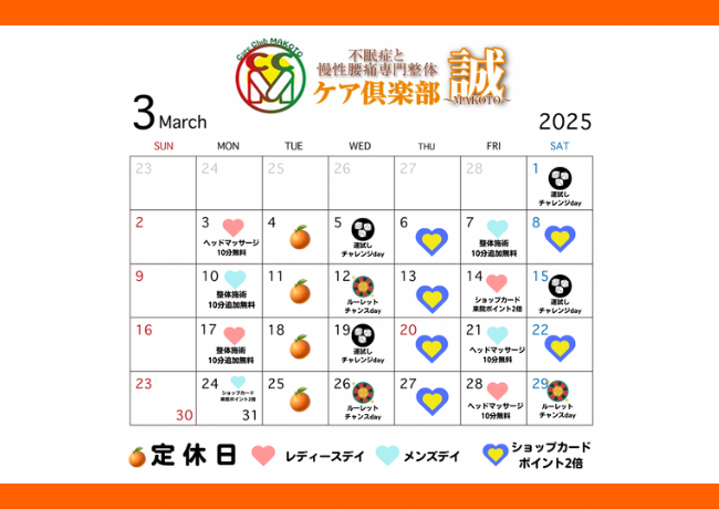 ご予約可能枠(3月9日〜3月15日