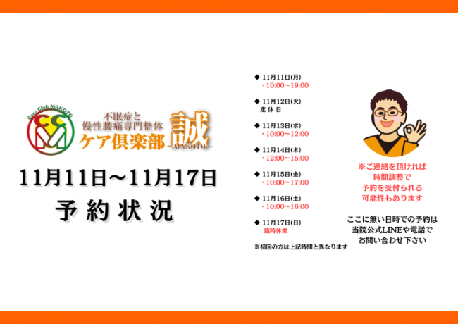 11月11日〜11月17日予約状況